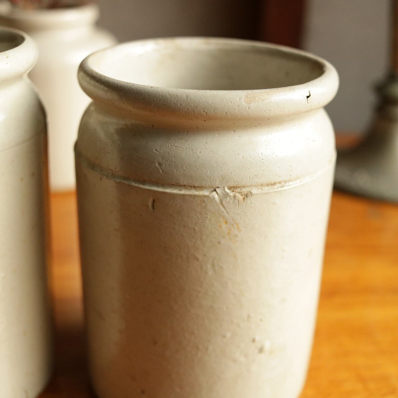 詳しい年代は不明ですが、ぽってりとしたクリーム色や傷、汚れなどアンティークらしい佇まい。