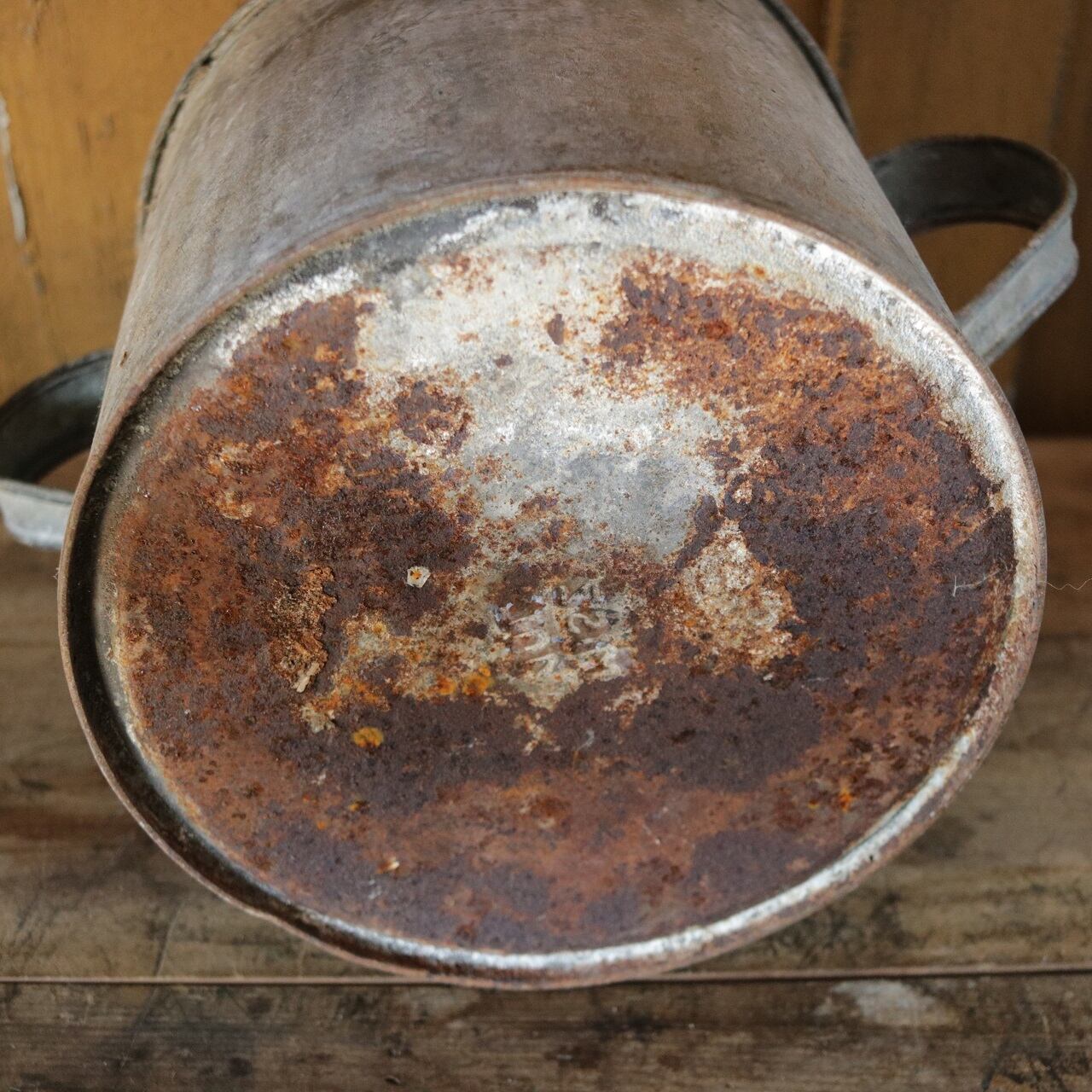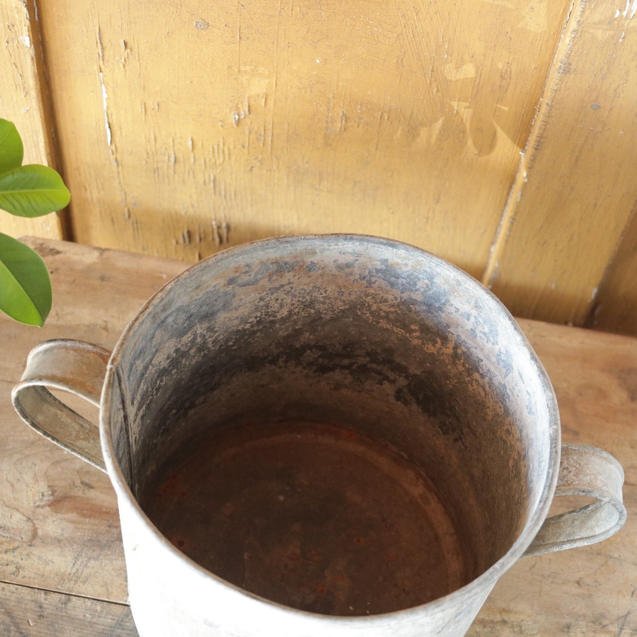 海外のアンティークらしい、分厚いブリキでできている、味のあるブリキバケツです。